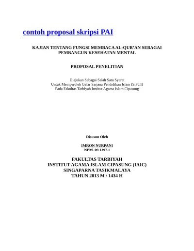 Tesis, program studi pendidikan agama islam program pascasarjana. Pendidikan agama islam di sekolah meningkatkan keimanan dan ketaqwaan peserta didik kepada allah swt yang telah ditanamkan dalam lingkungan keluarga. Riris lutfi ni'matul laila, dengan judul tesis strategi pembelajaran pendidikan agama islam di perguruan tinggi negeri (studi multi kasus di . Contoh tesis kuantitatif pai | contoh soal dan materi pelajaran 2 all . Proposal tesis di university of malaya (um) tanggal 19 juli 2018.